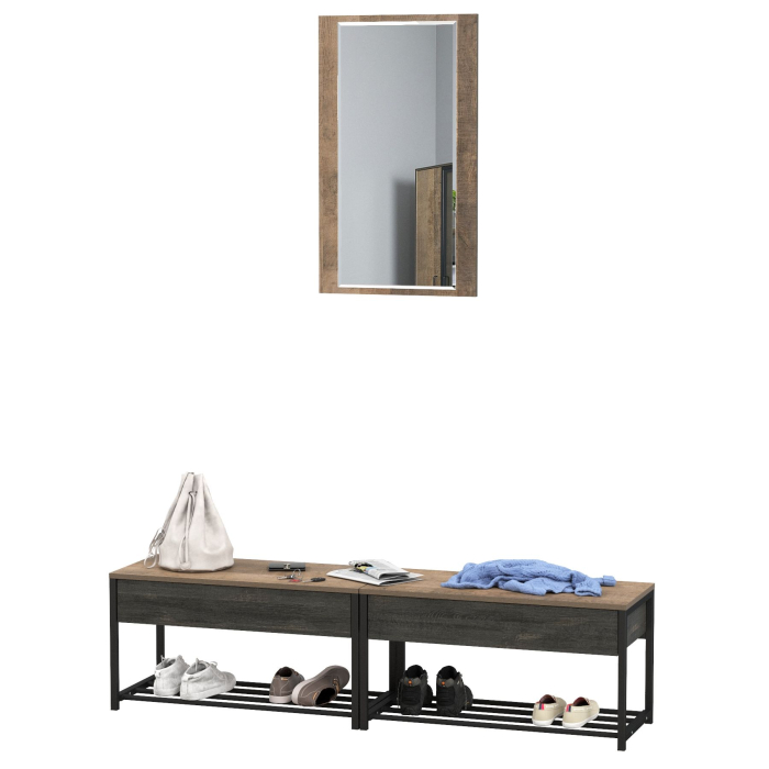 Две обувницы с сиденьем и зеркалом Трувор - современная и практичная мебель в индустриальном стиле лофт.
