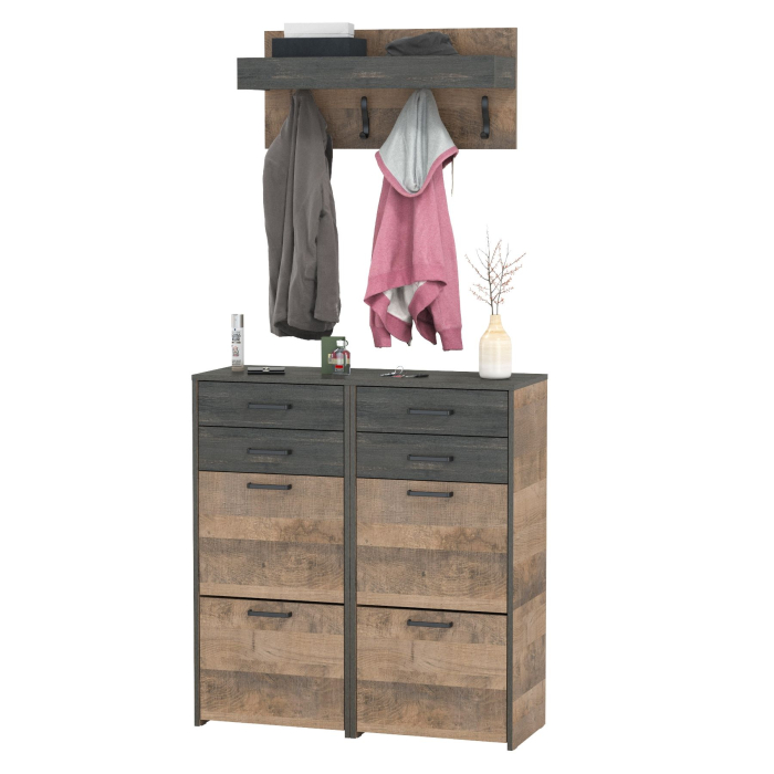 Две тумбы для обуви с ящиками и вешалкой для верхней одежды Трувор - современная и практичная мебель в индустриальном стиле лофт.