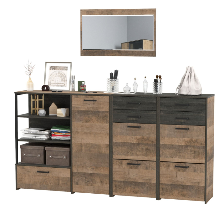 Навесное зеркало в прихожую Трувор с обувницами и комодом-тумбой - современная и практичная мебель в индустриальном стиле лофт.