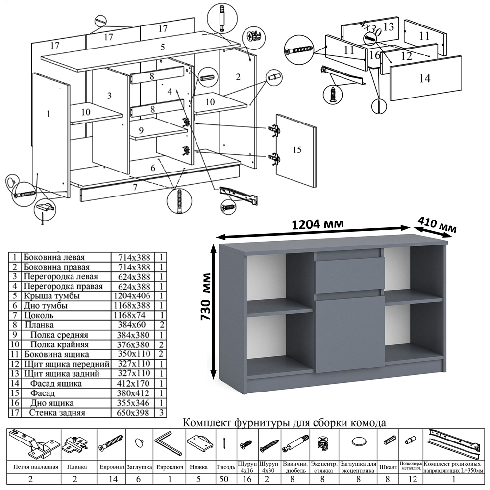 Выдвижной ящик на роликовых направляющих L=350 мм. неполного выдвижения обеспечивают комфортную эксплуатацию. На нижних кромках опор предусмотрены пластиковые подпятники для защиты поверхности пола от механических повреждений. Корпус и фасады изготовлены из экологически чистой ламинированной ДСП 16 мм, торцы окромлены ПХВ плёнкой 0,4 мм. Поставляется тумба ТВ Мори МТВ1204.1 в разобранном виде в надёжной упаковке, с комплектом сборочной фурнитуры и инструкцией по сборке.