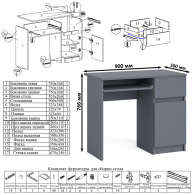 Корпус и фасады изготовлены из экологически чистой ламинированной ДСП 16 мм, торцы окромлены ПХВ плёнкой 0,4 мм. Лицевая фурнитура отсутствует - все фасады открываются за край. Поставляется в разобранном виде в надёжной упаковке, с комплектом сборочной фурнитуры и инструкцией по сборке.
