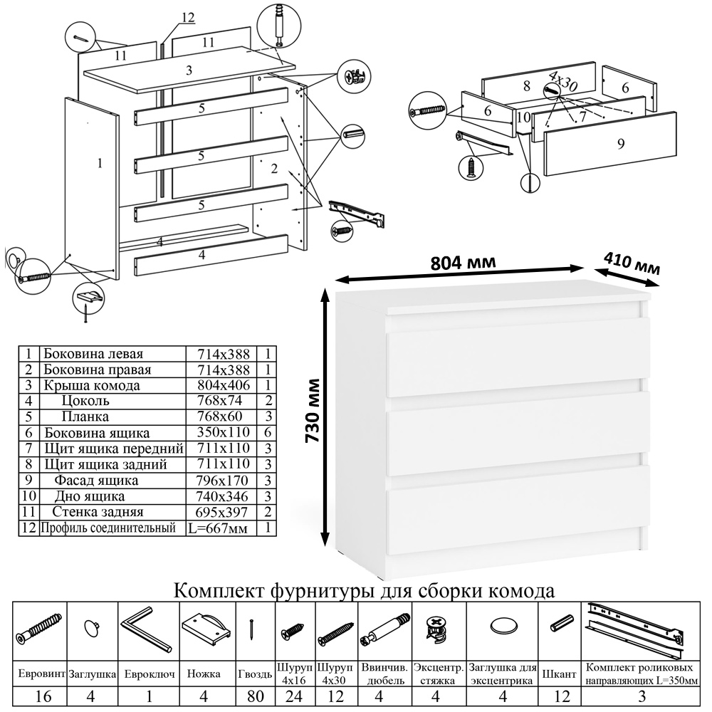 Гарантия: обмен неисправных частей комода три ящика Мори МК800.1 в течении двух недель с момента приобретения.