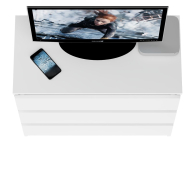 Классический комод с тремя выдвижными ящиками на роликовых направляющих. Продуманная конструкция позволяет убрать лишние предметы, тем самым сохраняя единый стиль оформления помещения. Отсутствие ручек главное преимущество данной модели. Роль ручек выполняют сами фасады. Открывание ящиков производится за счет пространства между планками и фасадами. Выдвижные ящики на роликовых направляющих L=350 мм. неполного выдвижения обеспечивают комфортную эксплуатацию. На нижних кромках опор предусмотрены пластиковые подпятники для защиты поверхности пола от механических повреждений.