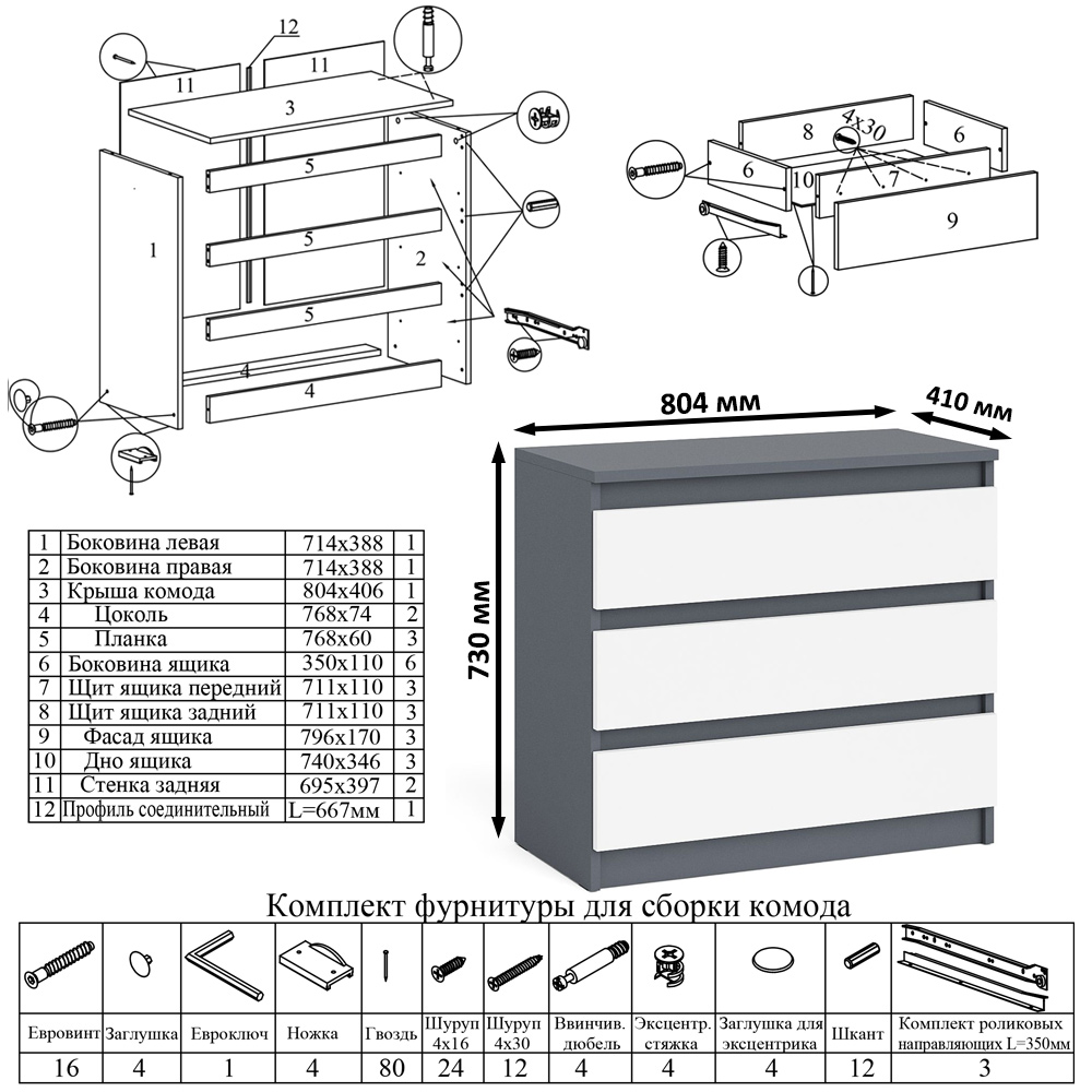 Отзывы о Столплит Комод три ящика Мори МК800.1 Графит/Белый