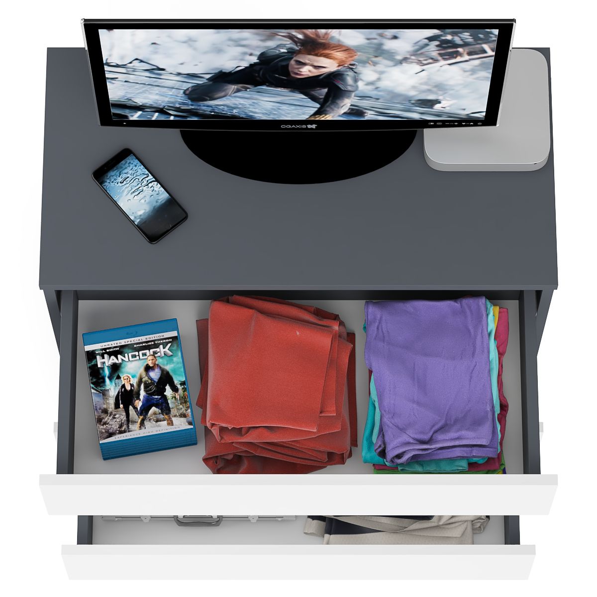 Выполнен в 5-ти цветах: белый, дуб сонома, графит, дуб сонома/белый и графит/белый.