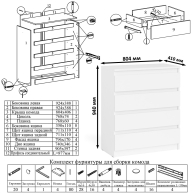 Гарантия: обмен неисправных частей комода четыре ящика Мори МК800.4 в течении двух недель с момента приобретения.