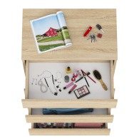 Корпус и фасады изготовлены из экологически чистой ламинированной ДСП 16 мм, торцы окромлены ПХВ плёнкой 0,4 мм. Лицевая фурнитура отсутствует - все фасады открываются за край. Поставляется в разобранном виде в надёжной упаковке, с комплектом сборочной фурнитуры и инструкцией по сборке.