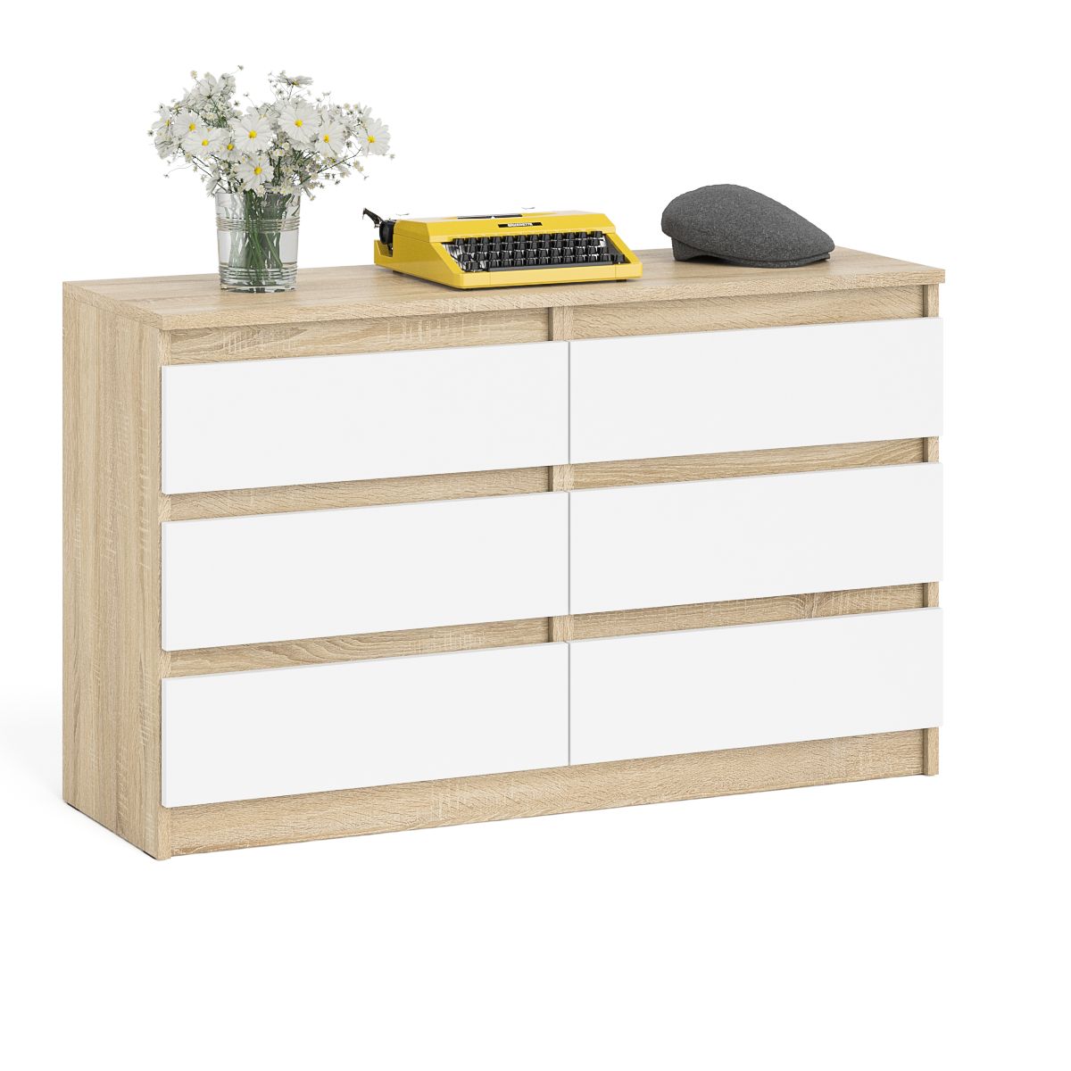Отзывы о Столплит Широкий комод шесть ящиков Мори МК1200.6 Дуб Сонома, Белый