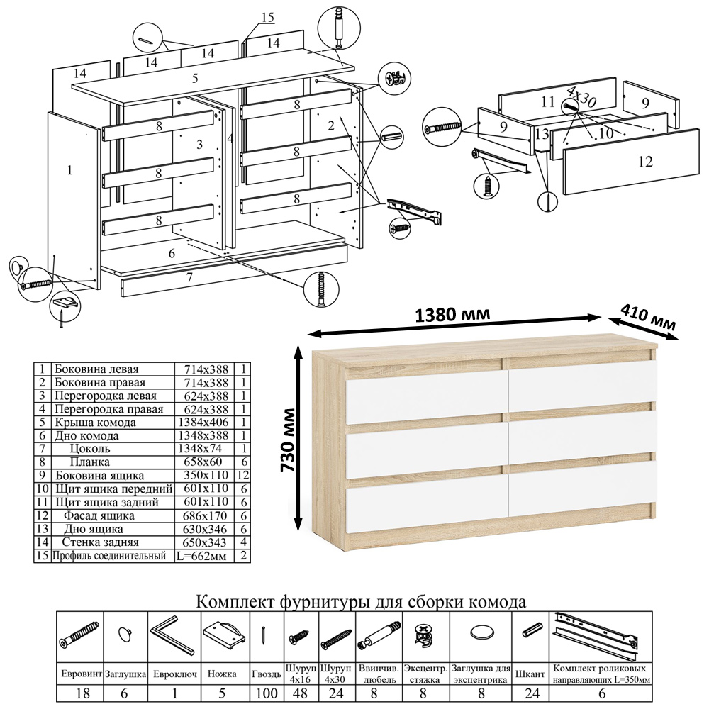 Комод на шесть ящиков Мори МК1380.6 Код I0000378353