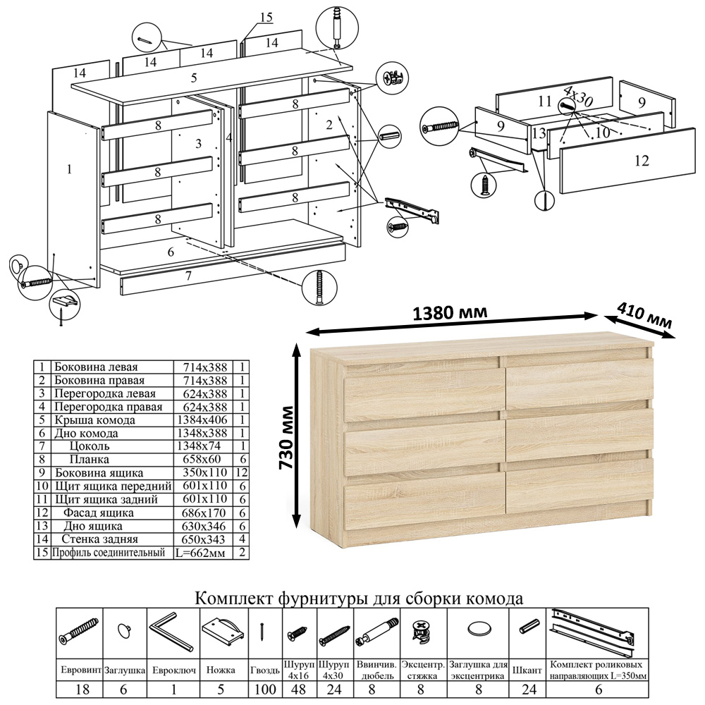 Отзывы о Столплит Комод на шесть ящиков Мори МК1380.6 Дуб Сонома