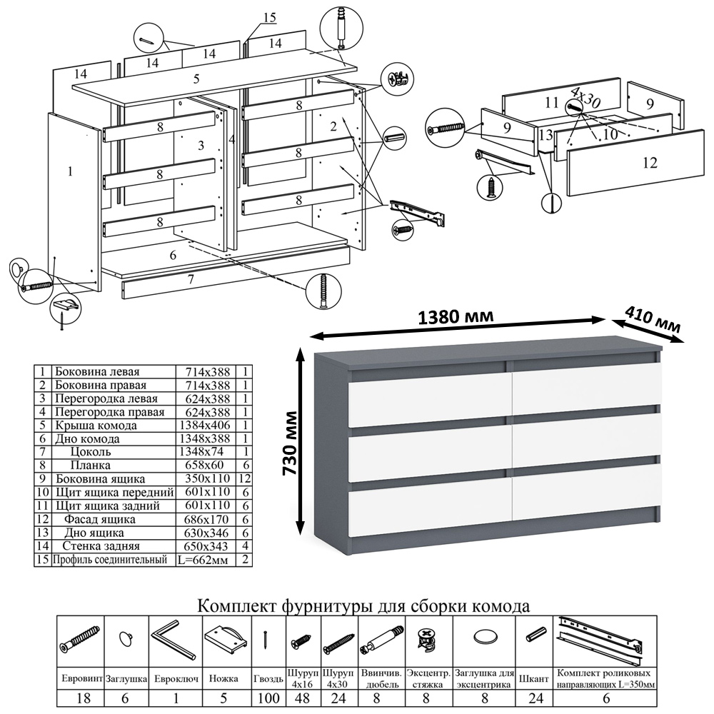 Отзывы о Столплит Комод на шесть ящиков Мори МК1380.6 Графит/Белый