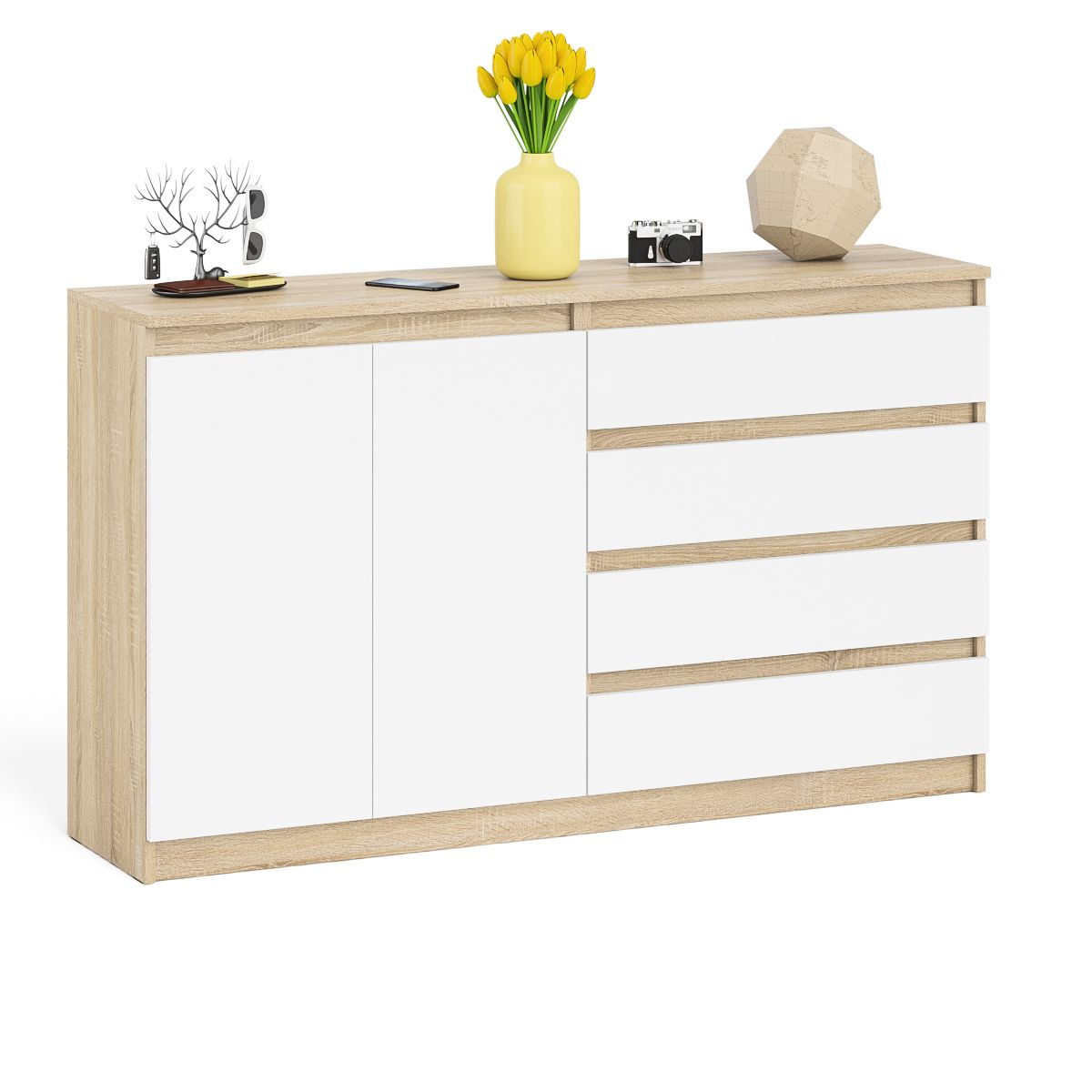 Комод широкий на четыре ящика и две дверки Мори МК1600.1 - минималистичный дизайн и доступная цена позволяет наслаждаться качественной и современной мебелью без значительных финансовых затрат!