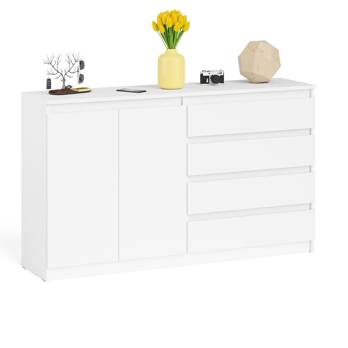 Комод широкий на четыре ящика и две дверки Мори МК1600.1 - минималистичный дизайн и доступная цена позволяет наслаждаться качественной и современной мебелью без значительных финансовых затрат!
