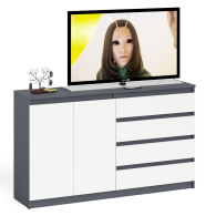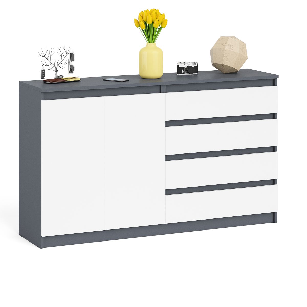 Комод широкий на четыре ящика и две дверки Мори МК1600.1 - минималистичный дизайн и доступная цена позволяет наслаждаться качественной и современной мебелью без значительных финансовых затрат!
