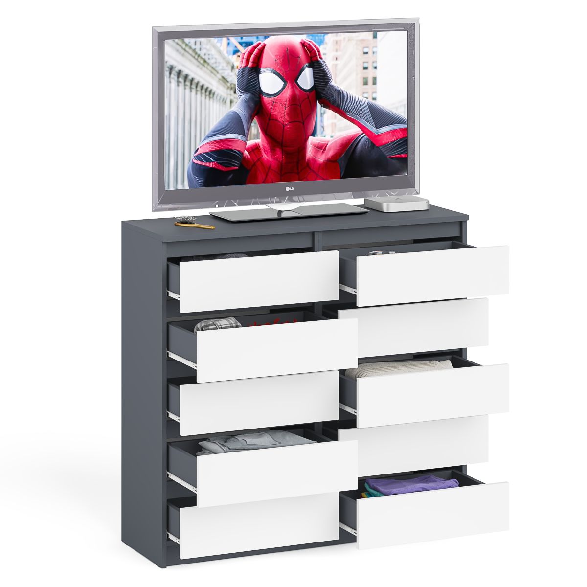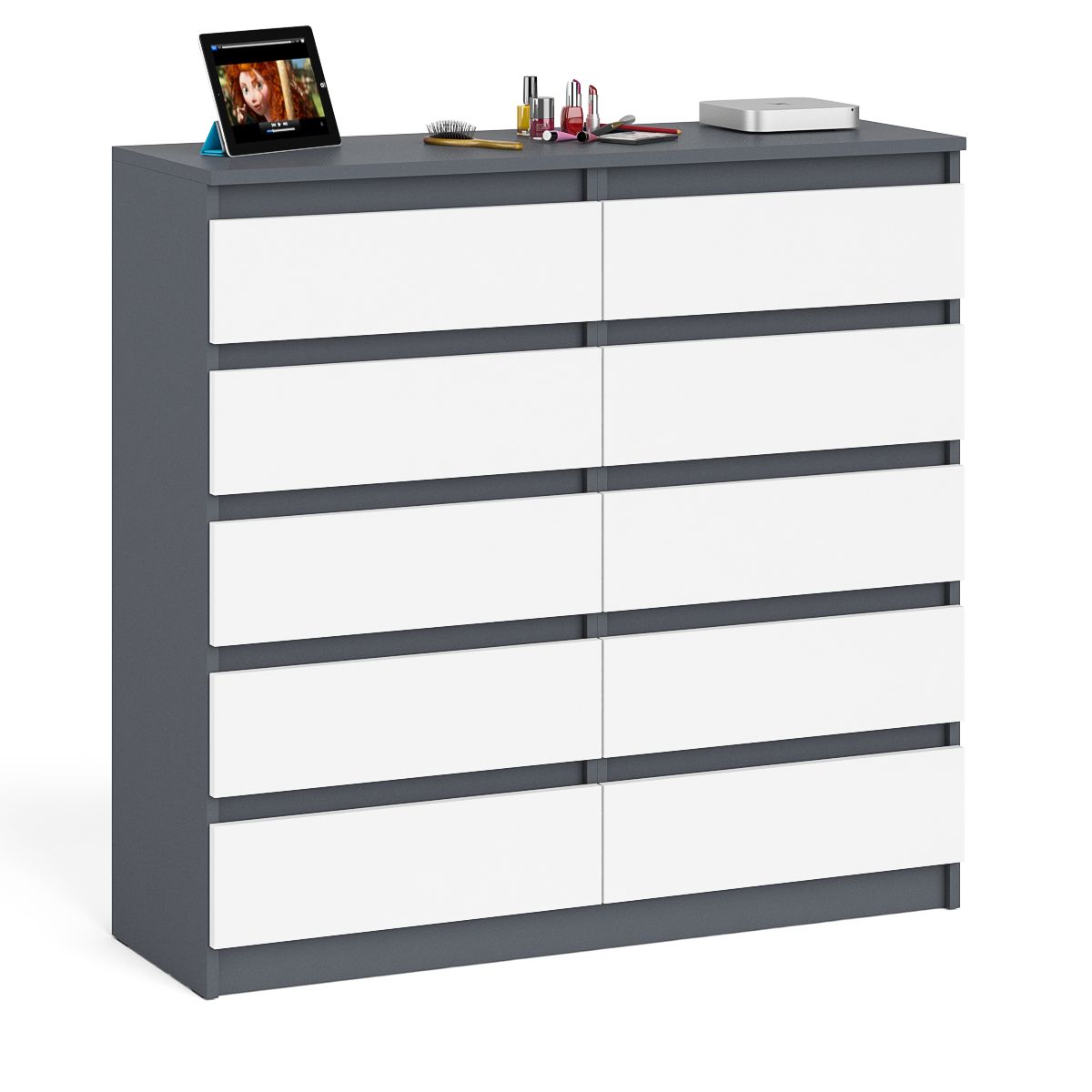 Отзывы о Столплит Комод высокий на десять выдвижных ящиков Мори МК1200.10 Графит/Белый