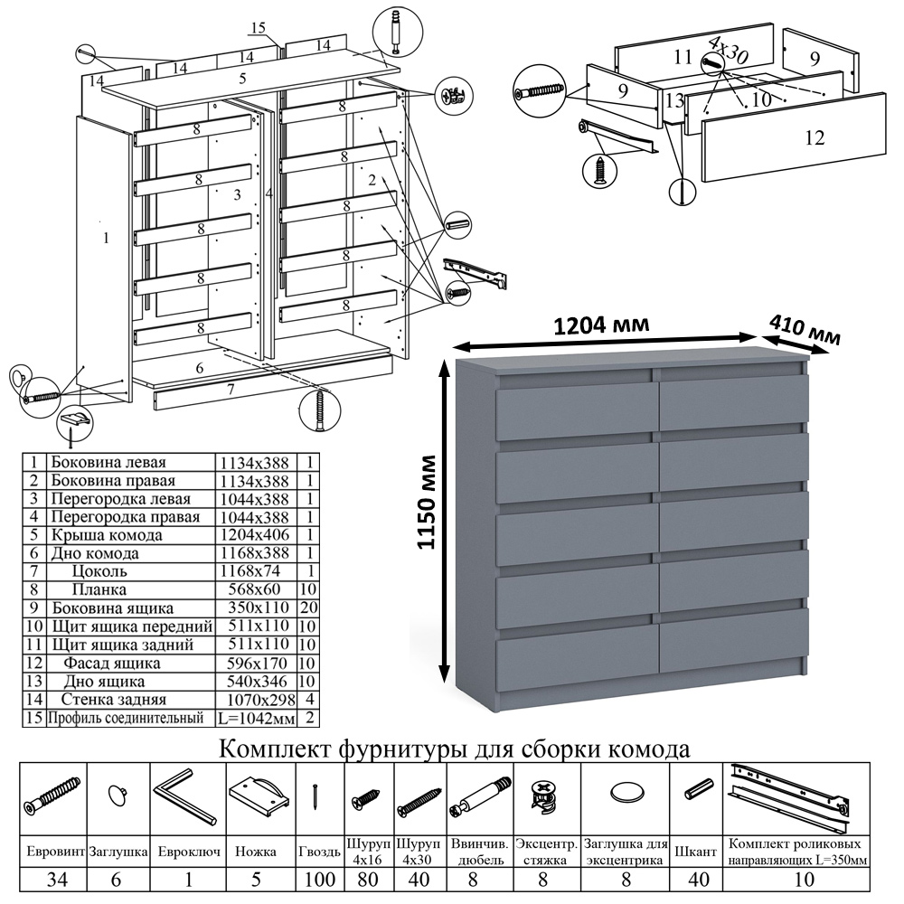 Отзывы о Столплит Комод высокий на десять выдвижных ящиков Мори МК1200.10 Графит