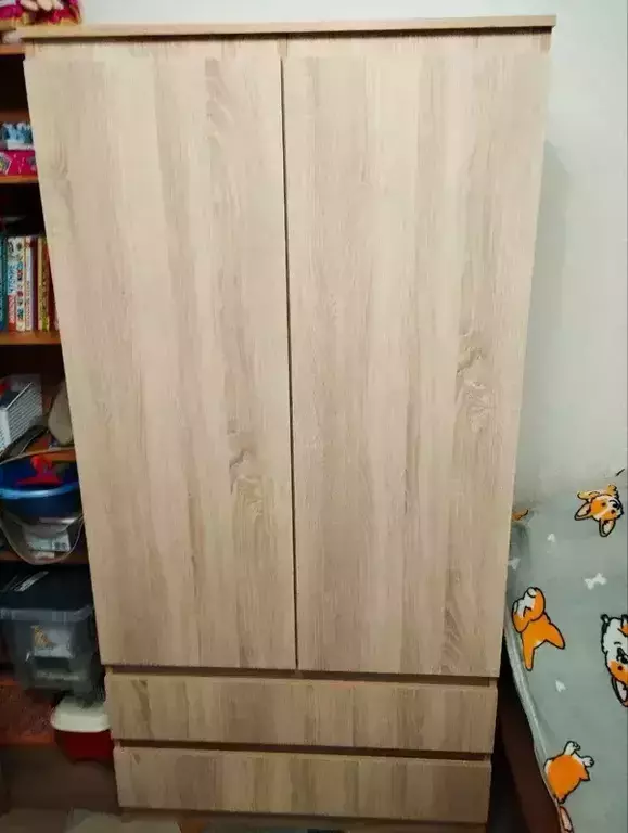 На нижних кромках опор предусмотрены пластиковые подпятники для защиты поверхности пола от механических повреждений. Корпус и фасады изготовлены из экологически чистой ламинированной ДСП 16 мм, торцы окромлены ПХВ плёнкой 0,4 мм. Лицевая фурнитура отсутствует - все фасады открываются за край. Поставляется шкаф-комод два ящика и две дверки Мори МШ900.1 в разобранном виде в надёжной упаковке, с комплектом сборочной фурнитуры и инструкцией по сборке.