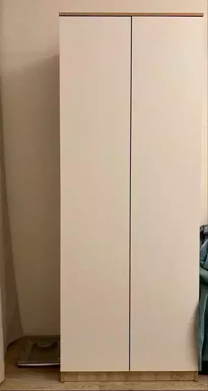 На нижних кромках опор предусмотрены пластиковые подпятники для защиты поверхности пола от механических повреждений. Корпус и фасады изготовлены из экологически чистой ламинированной ДСП 16 мм, торцы окромлены ПХВ плёнкой 0,4 мм. Лицевая фурнитура отсутствует - все фасады открываются за край. Поставляется шкаф двухдверный Мори МШ800.1 в разобранном виде в надёжной упаковке, с комплектом сборочной фурнитуры и инструкцией по сборке.