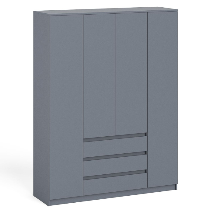 На нижних кромках опор предусмотрены пластиковые подпятники для защиты поверхности пола от механических повреждений. Корпус и фасады изготовлены из экологически чистой ламинированной ДСП 16 мм, торцы окромлены ПХВ плёнкой 0,4 мм. Лицевая фурнитура отсутствует - все фасады открываются за край. Поставляется шкаф-комод с тремя ящиками и четырьмя дверками Мори МШ1600.1 в разобранном виде в надёжной упаковке, с комплектом сборочной фурнитуры и инструкцией по сборке.