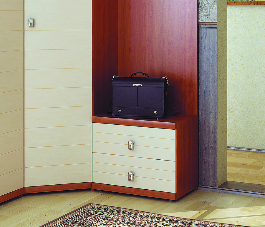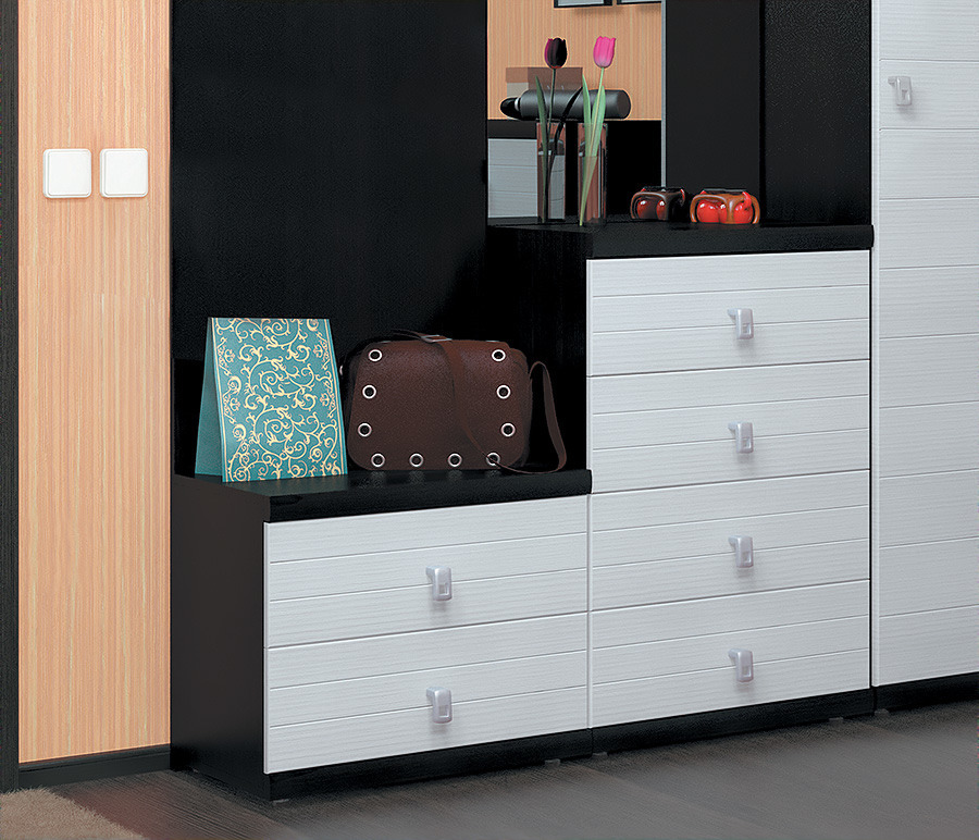 Эта компактная вешалка с тумбой впишется в интерьер даже небольшой прихожей. В двух просторных ящиках тумбы удобно хранить аксессуары. Сверху находится открытая полка. Полезного пространства должно быть много.