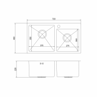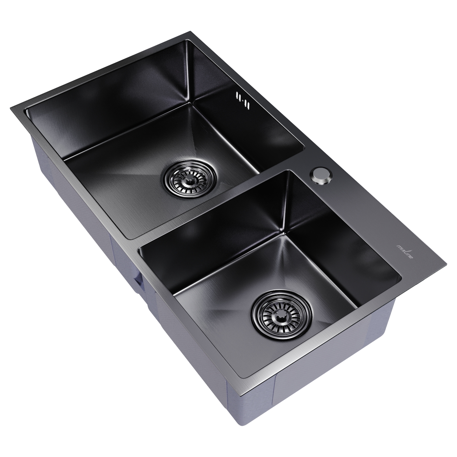 Мойка настол.монтаж 72х40 (3,0) 2-х ЧАШЕВАЯ вып 3 1/2 MIXLINE PRO 22см с сифоном (черный графит) Код I0000377258