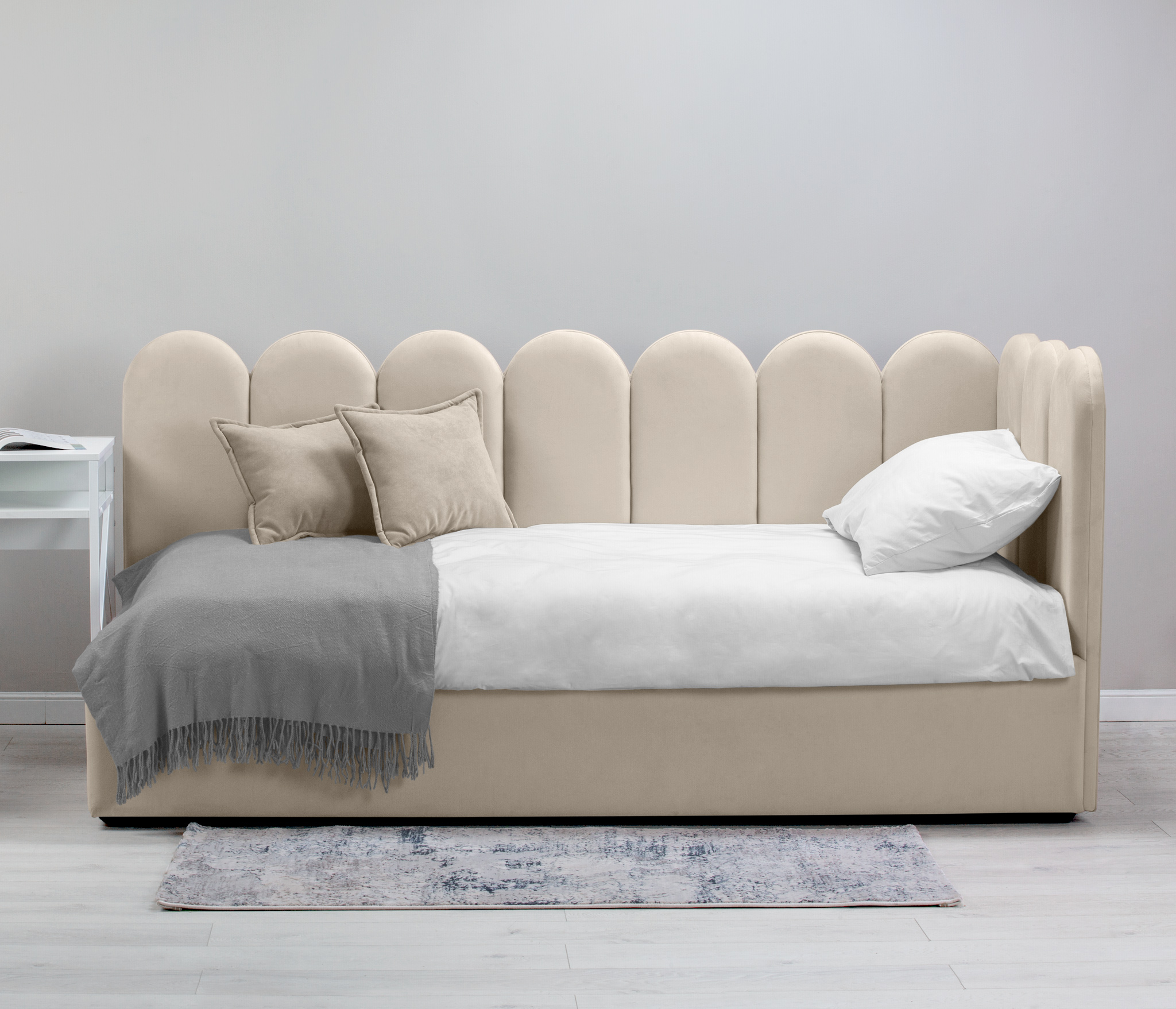 Отзывы о Столплит Кровать с мягким изголовьем Мия 90 с подъемным механизмом, микровелюр Кремовый