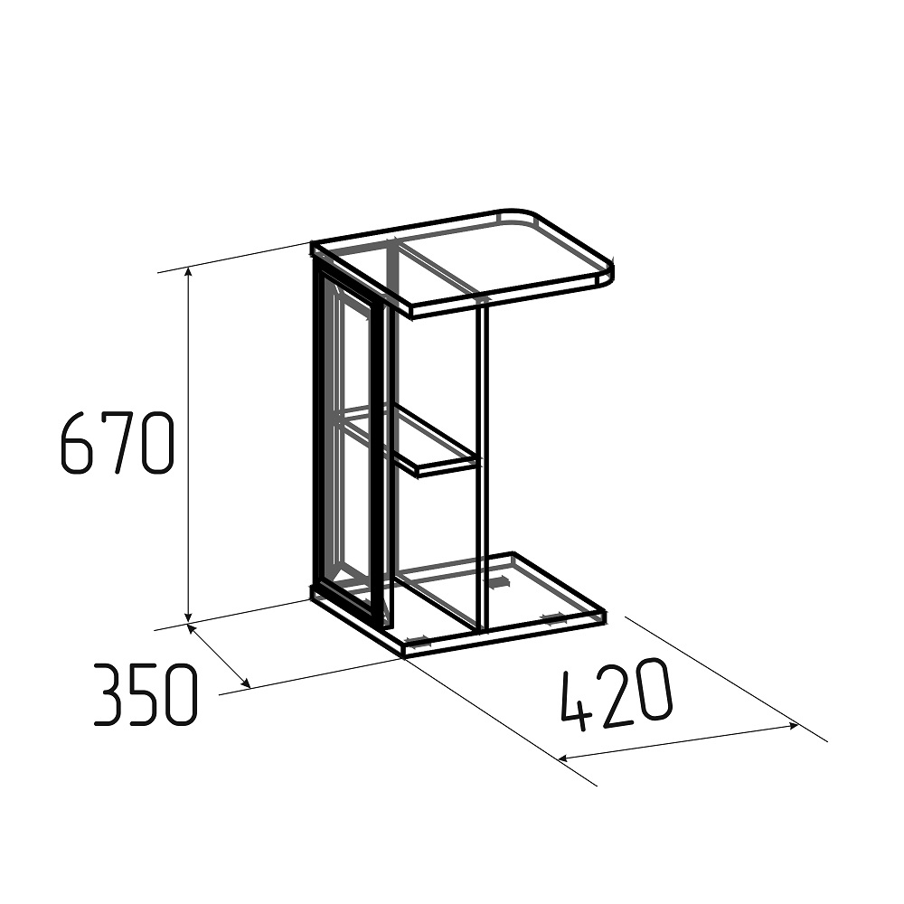 Компактный столик Аурелио 17 – приятное дополнение к мебельному комплекту в гостиной или спальне. Открытую полку Вы можете использовать в качестве подставки под книги, комнатные растения или чашку с любимым напитком.