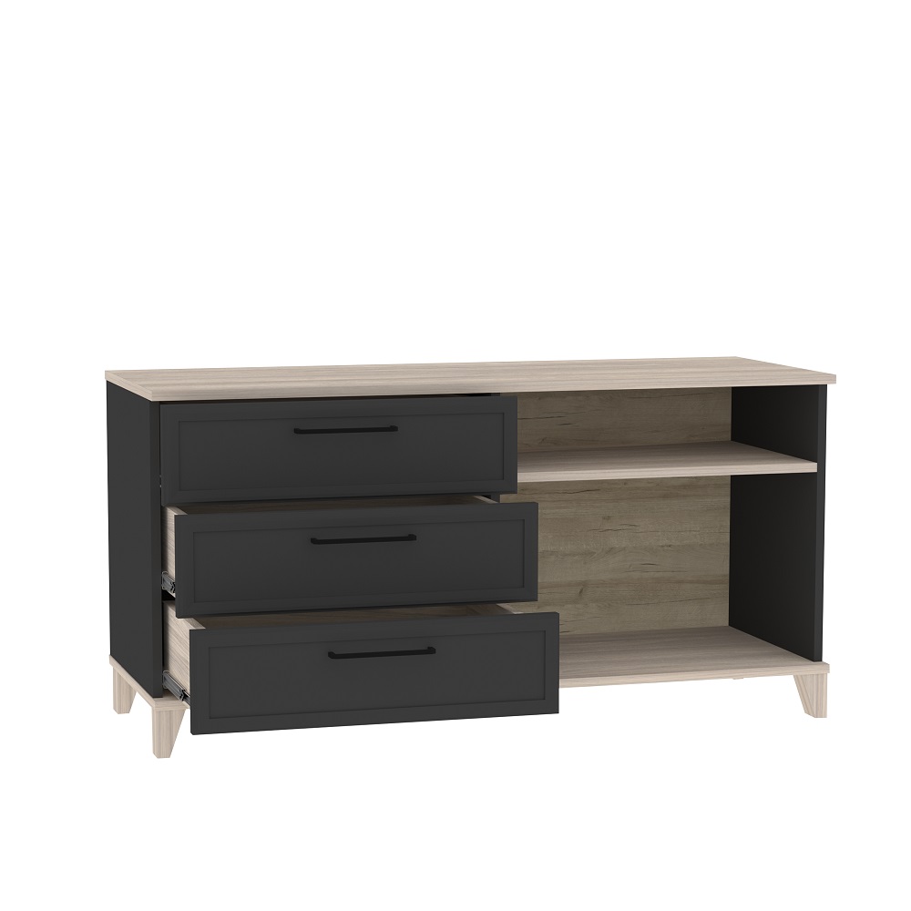 Тумбу МЦН Аурелио удобно использовать в любом по назначению помещении: в качестве ТВ-тумбы в гостиной, в прихожей, как место для хранения сезонных аксессуаров. В спальне модуль пригодится для организации хранения белья и вещей в сложенном виде, а также постельных принадлежностей. Рамочные фасады модуля и черные металлические ручки-скобы подчеркивают стиль всей коллекции – современная классика.