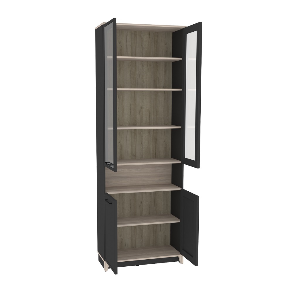 Коллекция Аурелио – воплощение лучших черт классики в современном исполнении. Корпус мебели выполнен из высококлассного ЛДСП, фасад – МДФ в профиле. Рамочные фасады выглядят изысканно в сочетании со стеклом и металлическими черными ручками. Книжный шкаф Аурелио 7 за счет ширины в 80 см вместит в себя разноплановые вещи: книги и другую печатную литературу, сервиз, предметы декора, комнатные растения и все то, что нужно хранить в гостиной.