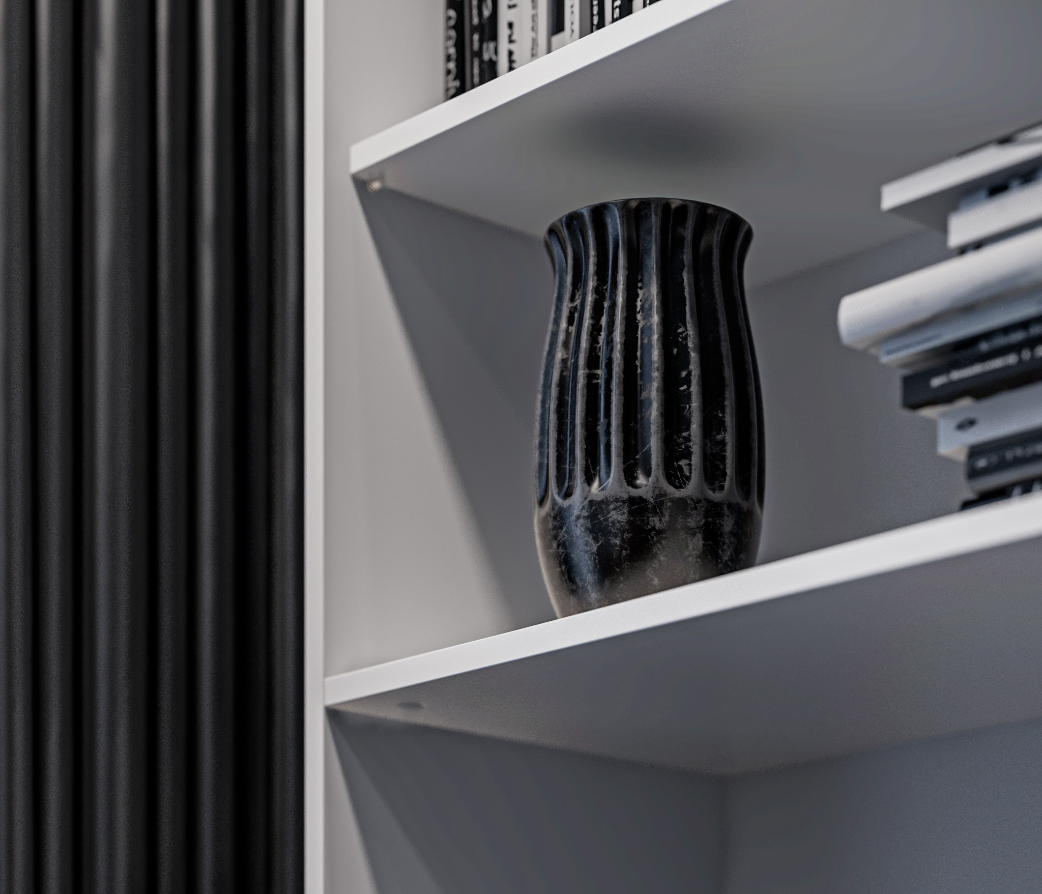 МС Твин предоставляет возможность собрать шкаф или стеллаж по своему вкусу. Вы сами выбираете размеры, цвет ручек: белый или черный, наполнение: ящик или полки. Помимо этого, вы можете решить, оставить фасады глухими или выбрать стеклянные, чтобы добавить прозрачности и легкости в ваш интерьер. Создайте шкаф-стеллаж, который идеально подходит для ваших потребностей и вписывается в ваш стиль.