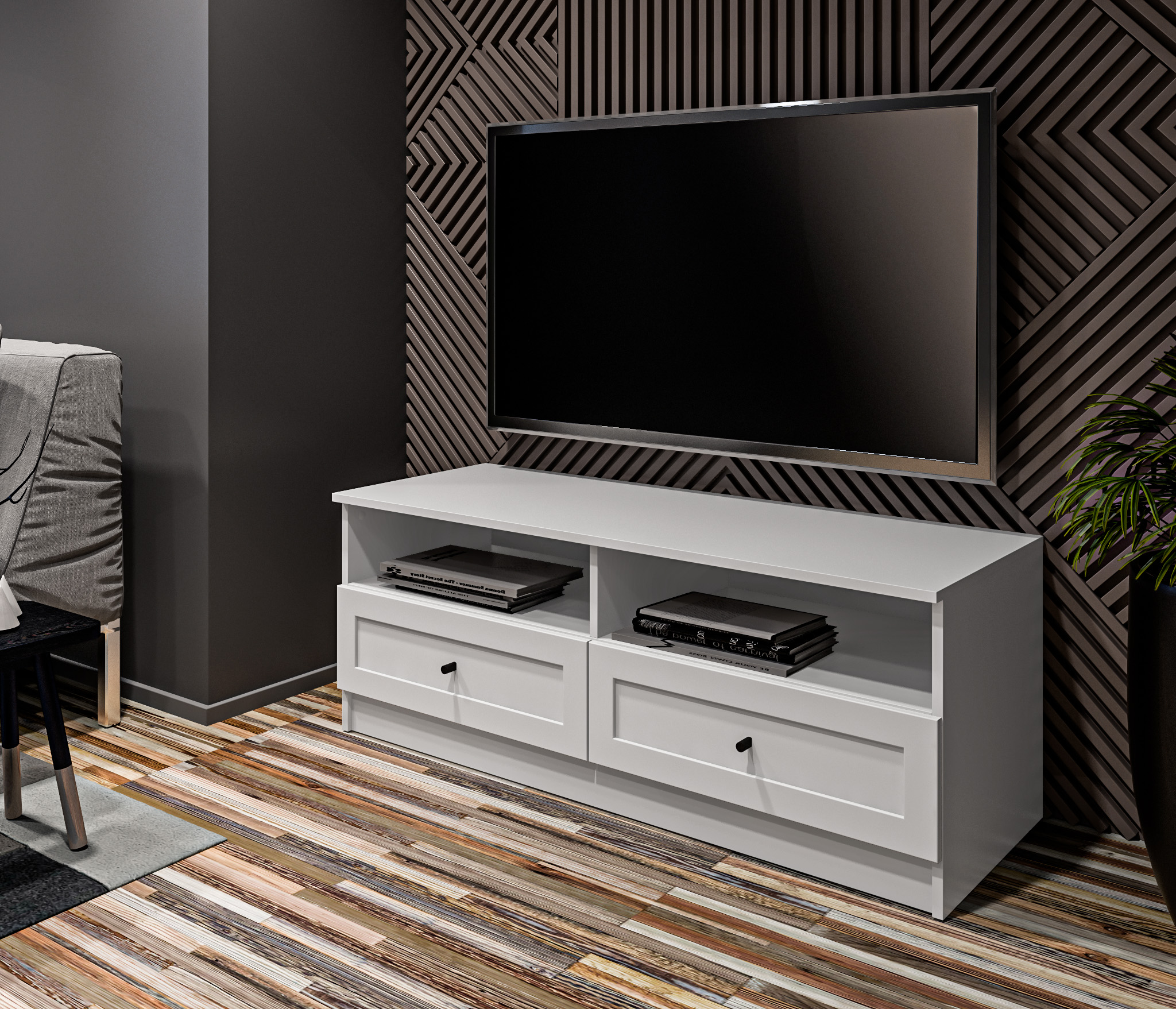 Продуманные детали делают использование тумбы максимально удобным: шариковые направляющие обеспечивают плавное выдвижение ящика.