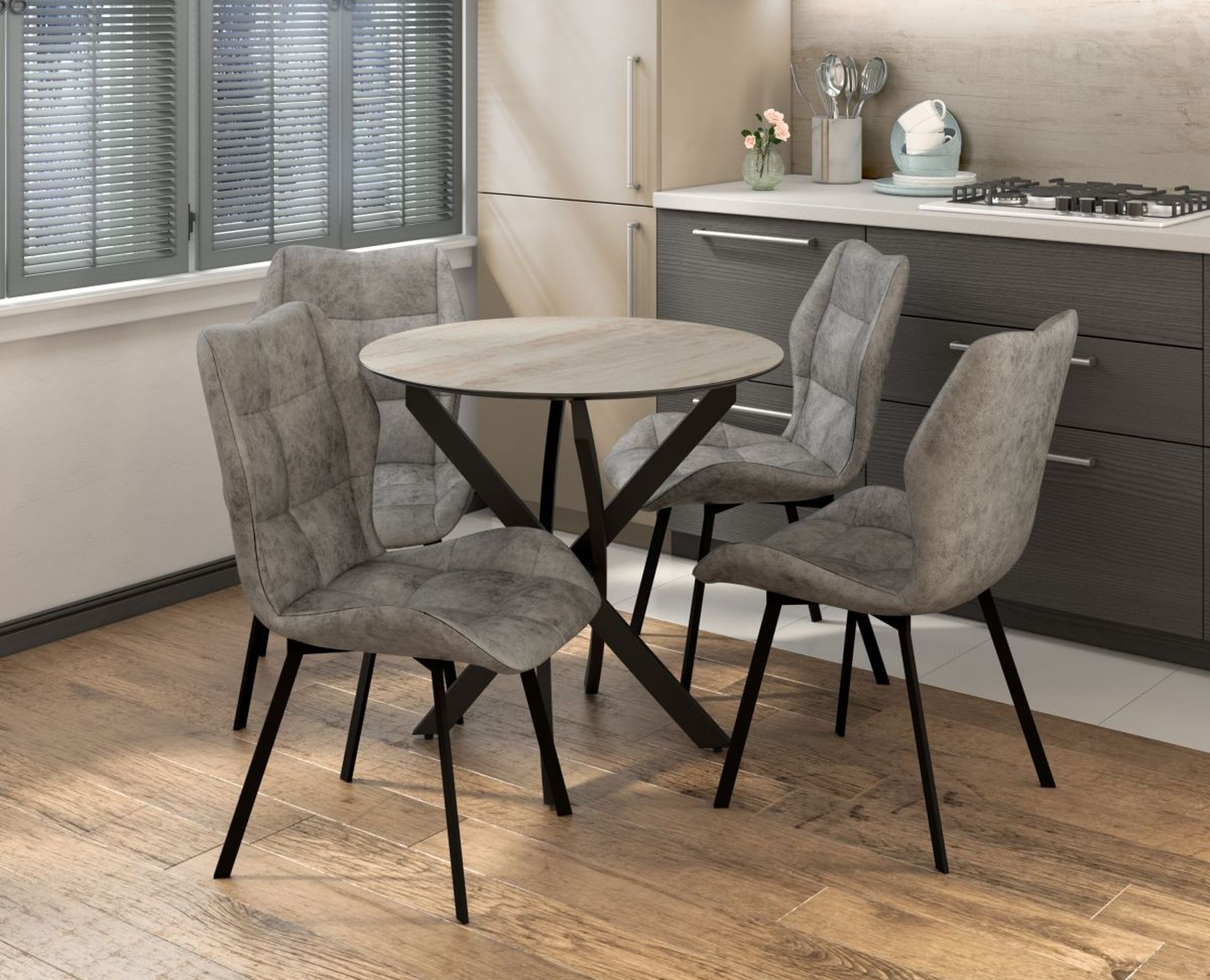 Стол с круглой столешницей из ЛДСП толщиной 16 мм с фотопечатью и покрытая лаком.