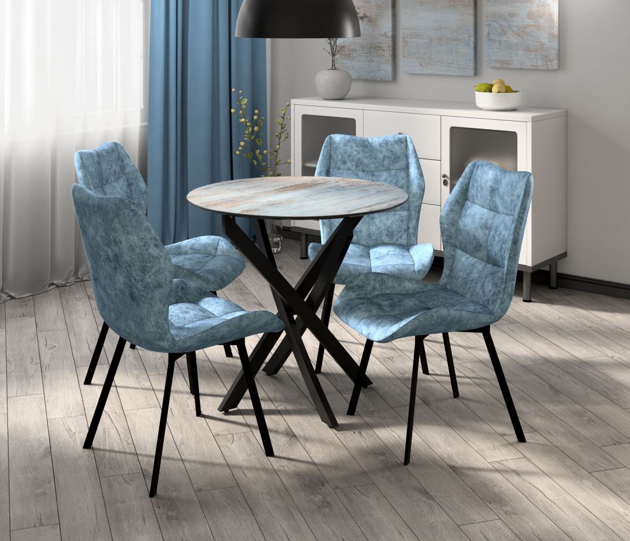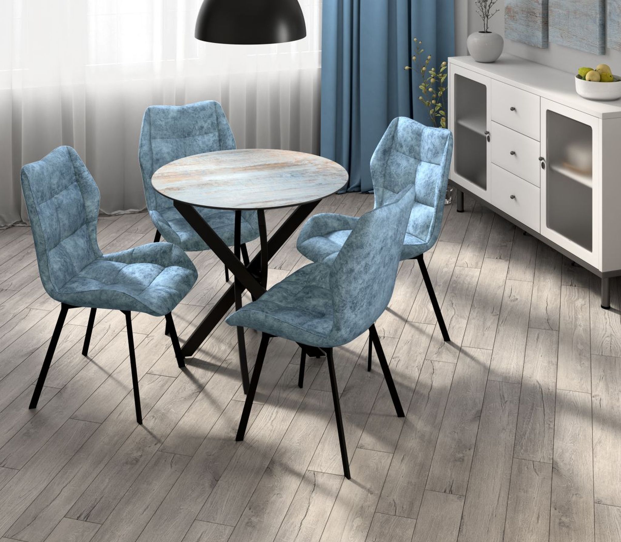 Стол с круглой столешницей из ЛДСП толщиной 16 мм с фотопечатью и покрытая лаком.