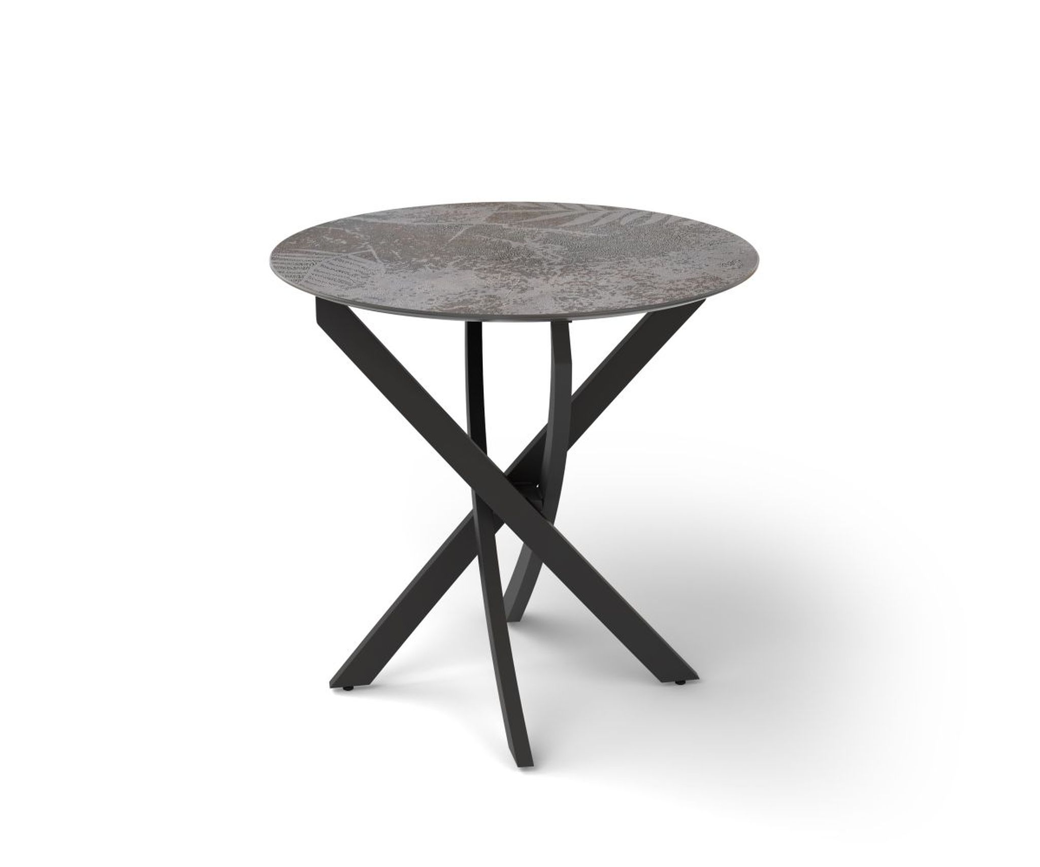 Стол с круглой столешницей из ЛДСП толщиной 16 мм с фотопечатью и покрытая лаком.