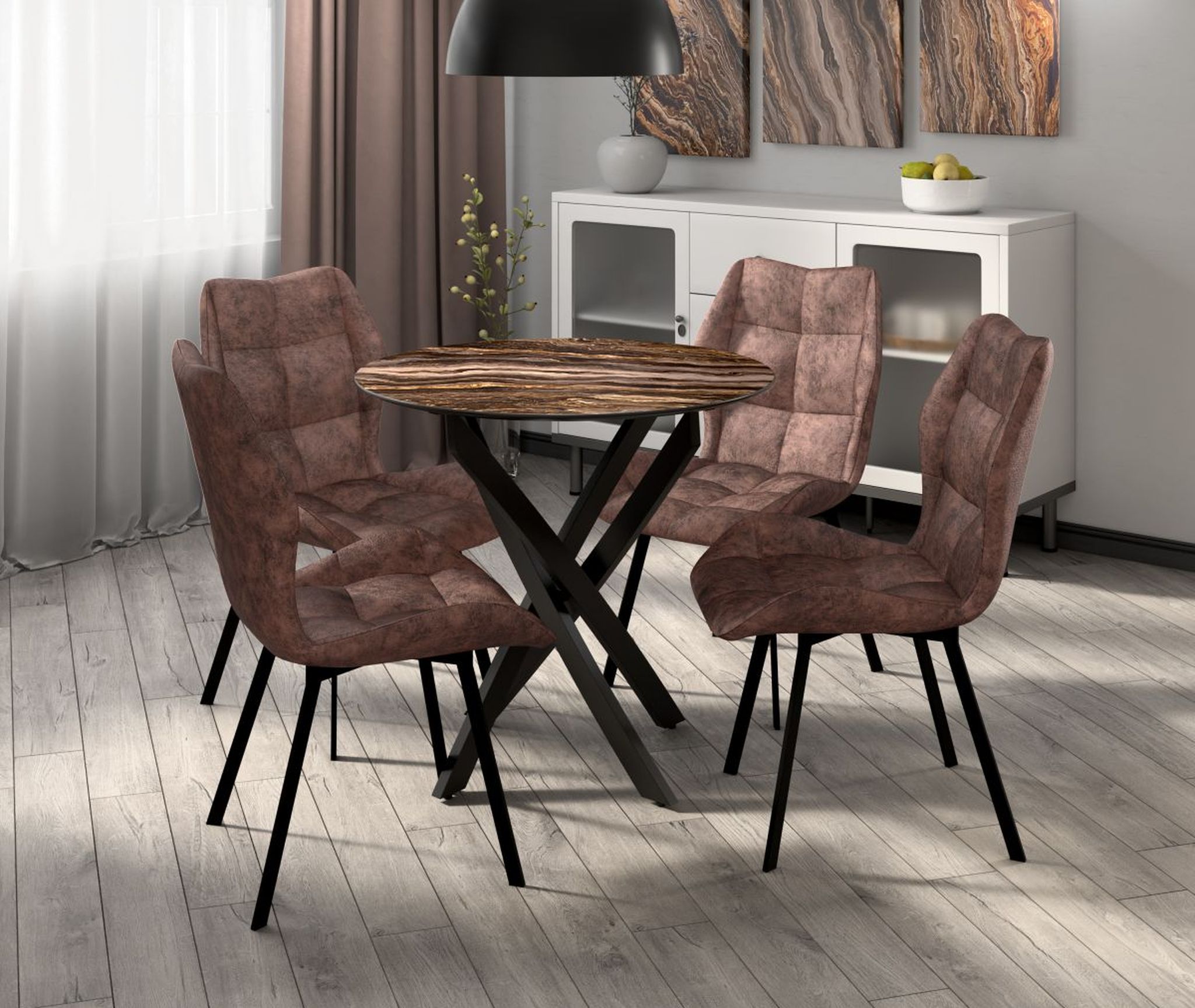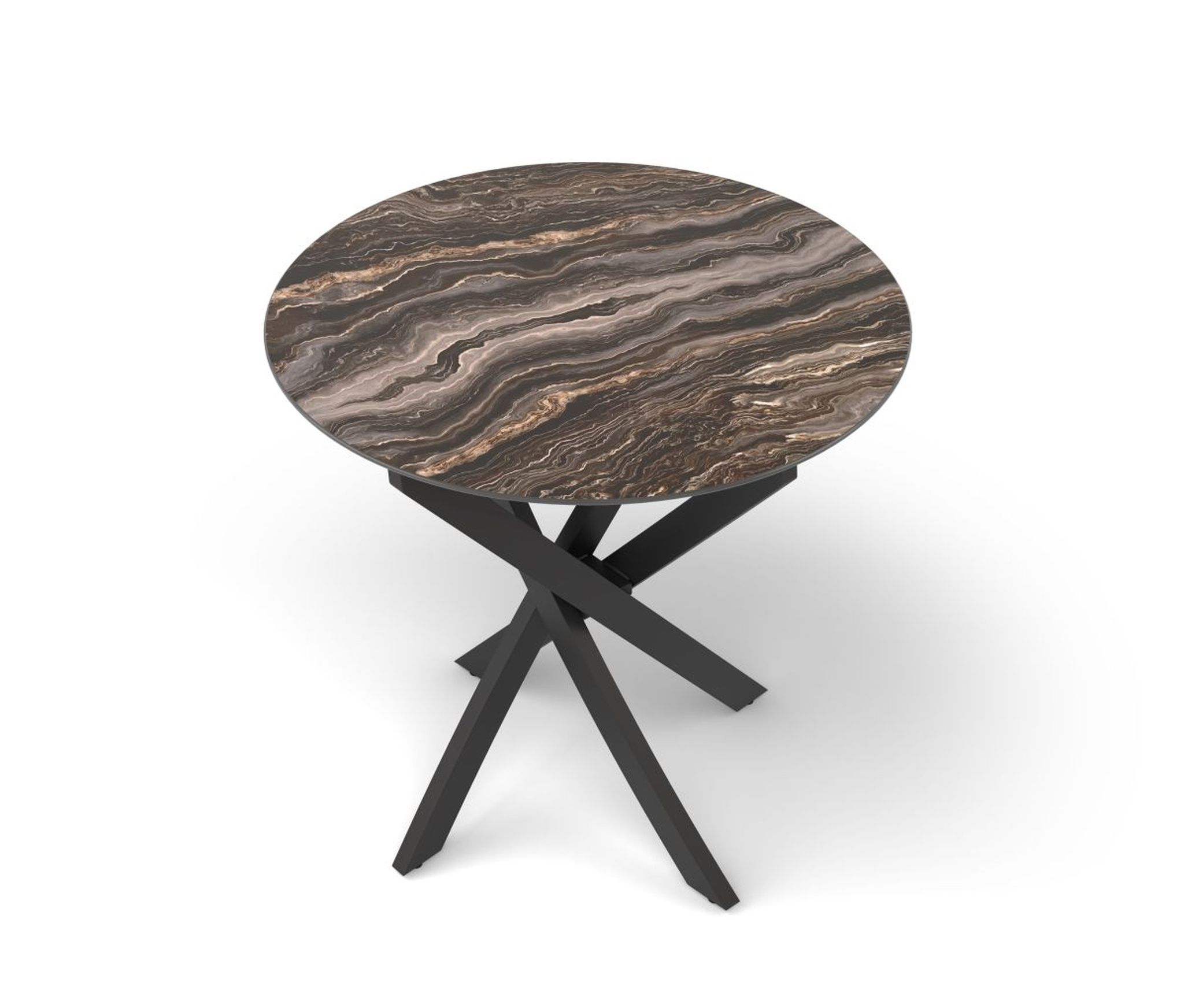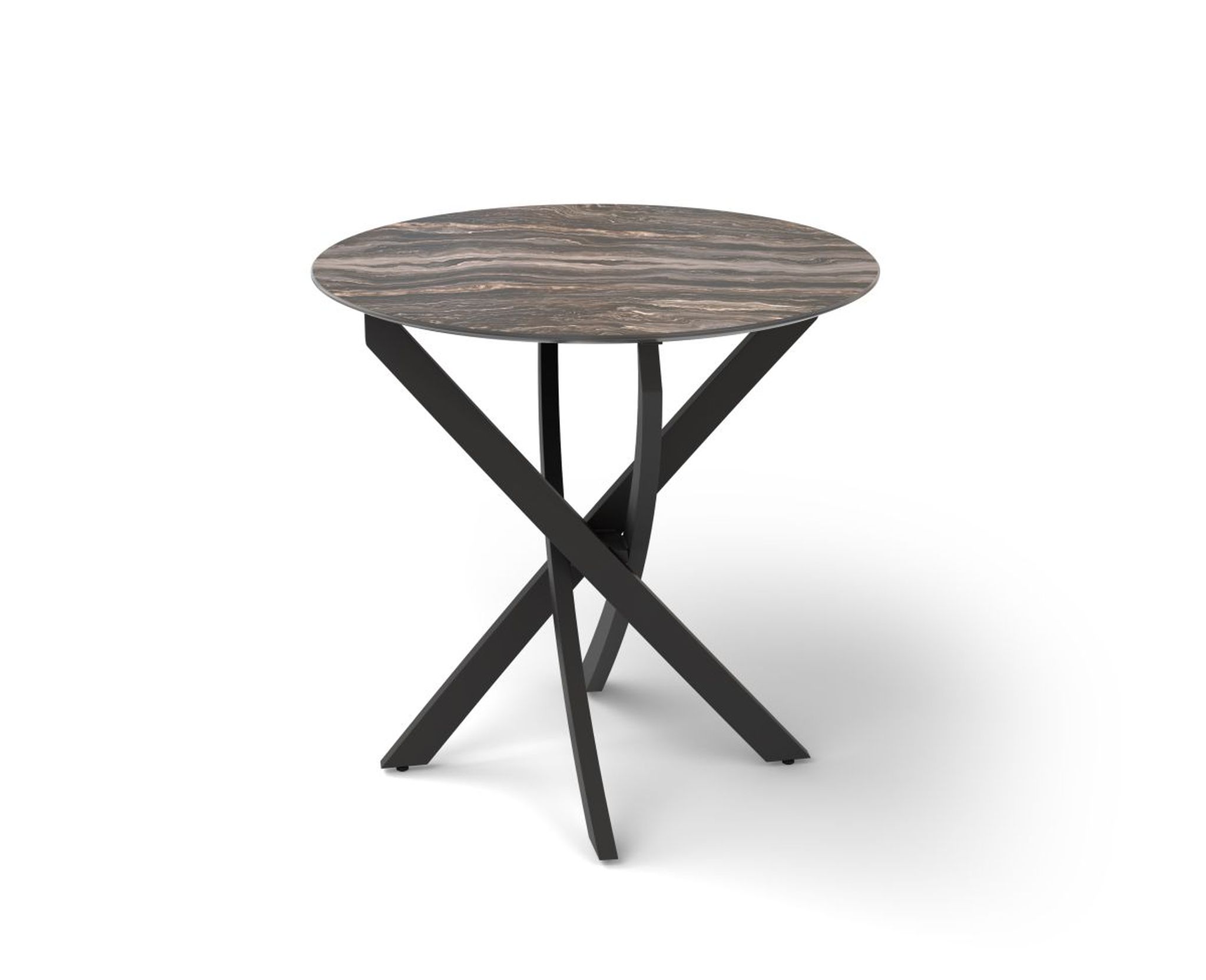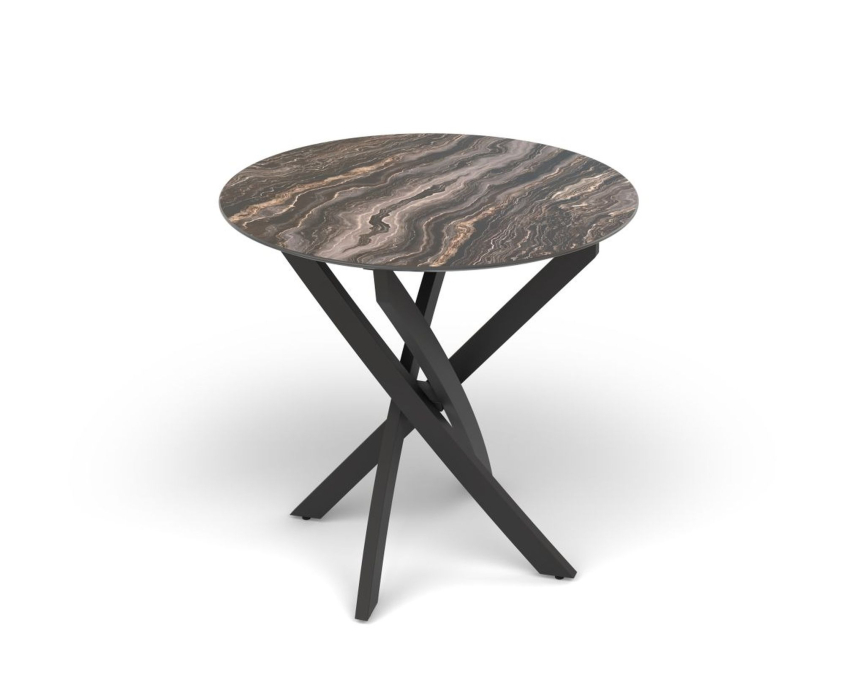Стол с круглой столешницей из ЛДСП толщиной 16 мм с фотопечатью и покрытая лаком.