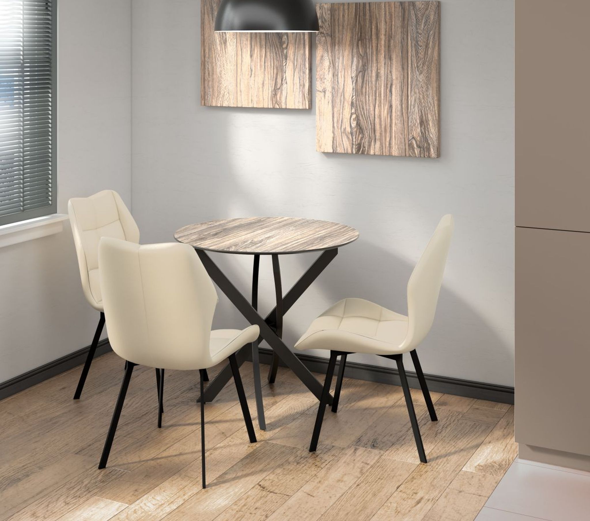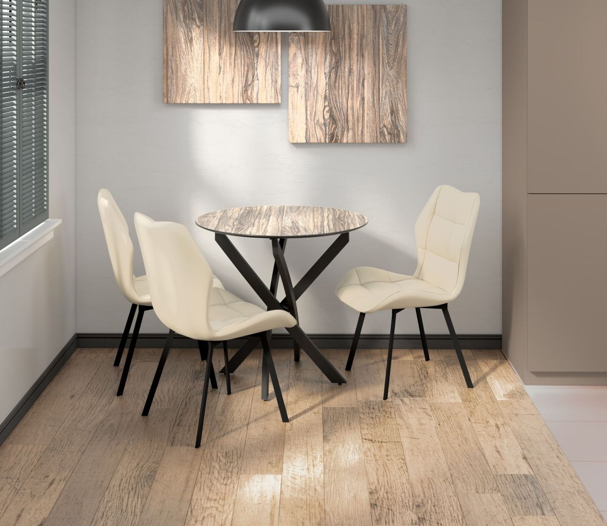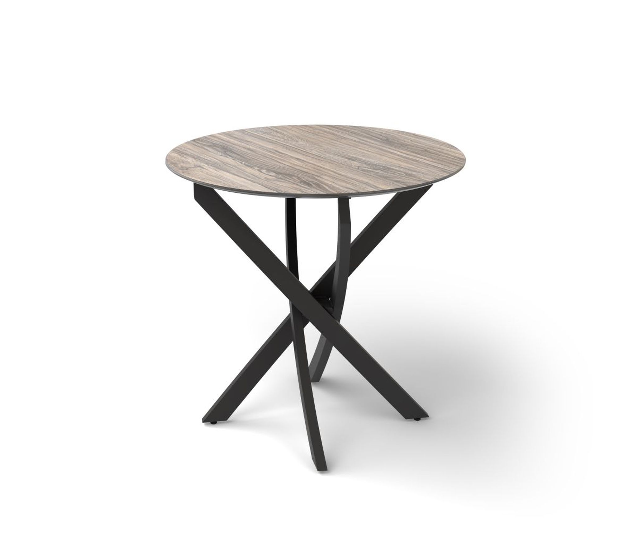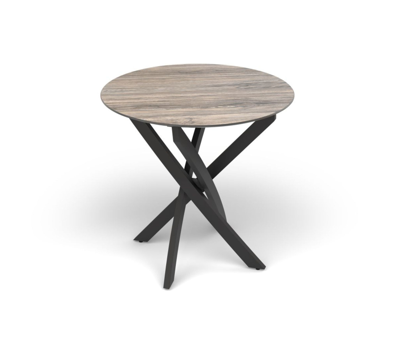 Стол с круглой столешницей из ЛДСП толщиной 16 мм с фотопечатью и покрытая лаком.
