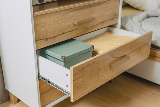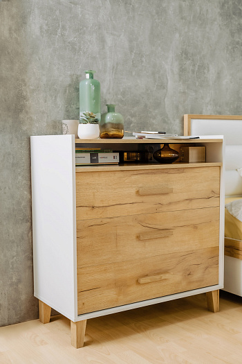 В модульной коллекции Айрис каждая деталь продумана до мелочей. Древесные фасады систем хранения как будто укутаны вбелоснежный цвет, в котором представлен корпус. Тонкие точеные опоры, деревянные ручки геометрической формы, использование зеркал на фасадах и разноплановое наполнение шкафов, долговечная фурнитура - еще не все преимущества Айрис. Мебель надежна, но совсем не массивна.Изготовлена из высококлассного ЛДСП класса эмиссии Е1, что гарантирует безопасность в процессе ежедневной эксплуатации. А кромка ПВХ по периметру изделий защитит их от деформации и продлит срок службы. Разнообразие модулей позволит Вам без труда собрать идеальный комплект и рационально организовать пространство спальни. Например, комплект 2 состоит из двуспальной кровати, двух прикроватных тумб, низкого комода с ящиками и шкафа для одежды и белья. Зеркало в комплект не входит.
