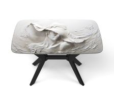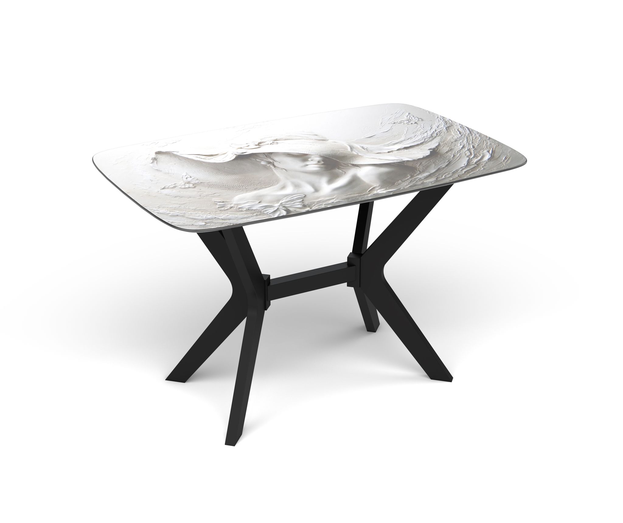 Стол с прямоугольной столешницей из ЛДСП толщиной 16 мм с фотопечатью и покрытая лаком.