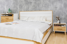 Ключевым элементом в Вашей современной спальне станет двуспальная кровать Айрис. Текстурные опоры и массивная рама на изголовье поддерживают эко-направленность всей коллекции, выполненной в скандинавском стиле. Мягкая спинка со стяжкой обтянута белой экокожей, которая не боится деформации и не требует специального ухода. Кровать комплектуется ортопедическим основанием с подъемным механизмом.