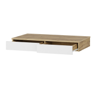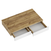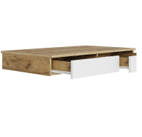 Подвесной письменный стол с двумя выдвижными ящиками, которые оснащены роликовыми направляющими и открываются за зазор снизу. В сочетании с двухстворчатым шкафом и пеналами образует полноценное рабочее место для учебы ребенка в домашних условиях.