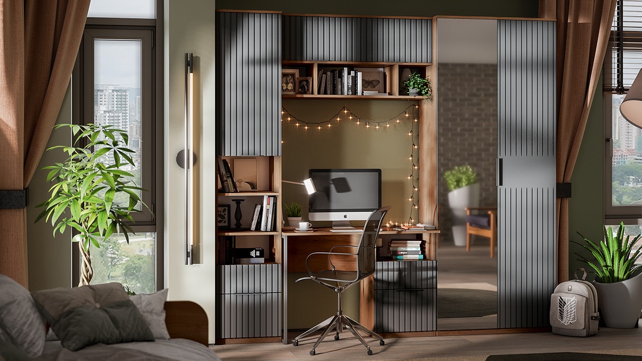 Коллекция мебели выполнена из качественных материалов и имеет современный дизайн, который легко сочетается с любым интерьером. Благодаря тщательно подобранной цветовой палитре, мебель этой линейки следует модным трендам и актуальным стилям. Цвет металлических ручек подобран к оттенку фасадов, что завершает концепт коллекции и создает идеальный баланс стиля и качества.