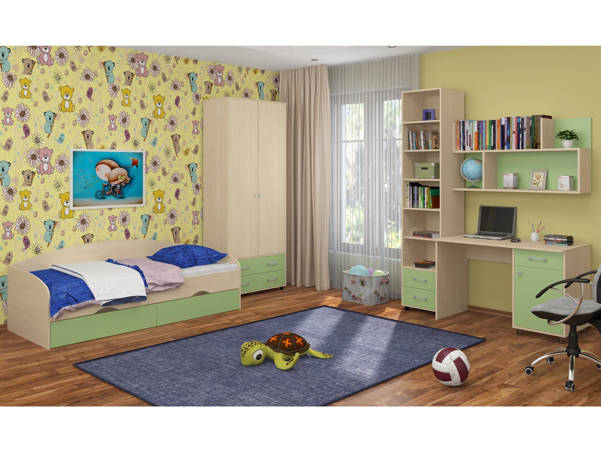Детская комната ДЕЛЬТА Композиция 12 (Дуб молочный) (Салатовый)