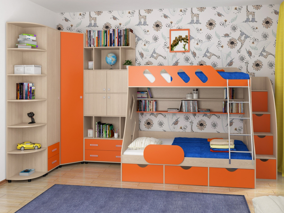 Детская комната ДЕЛЬТА Композиция 15 (Дуб молочный) (Оранжевый)