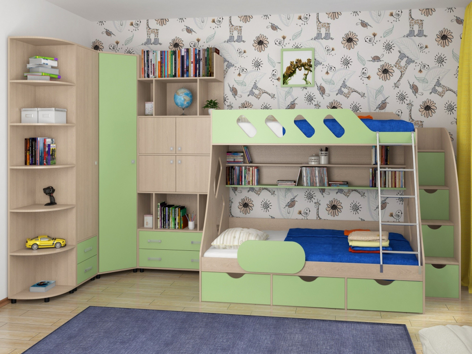 Детская комната ДЕЛЬТА Композиция 15 (Дуб молочный) (Салатовый)