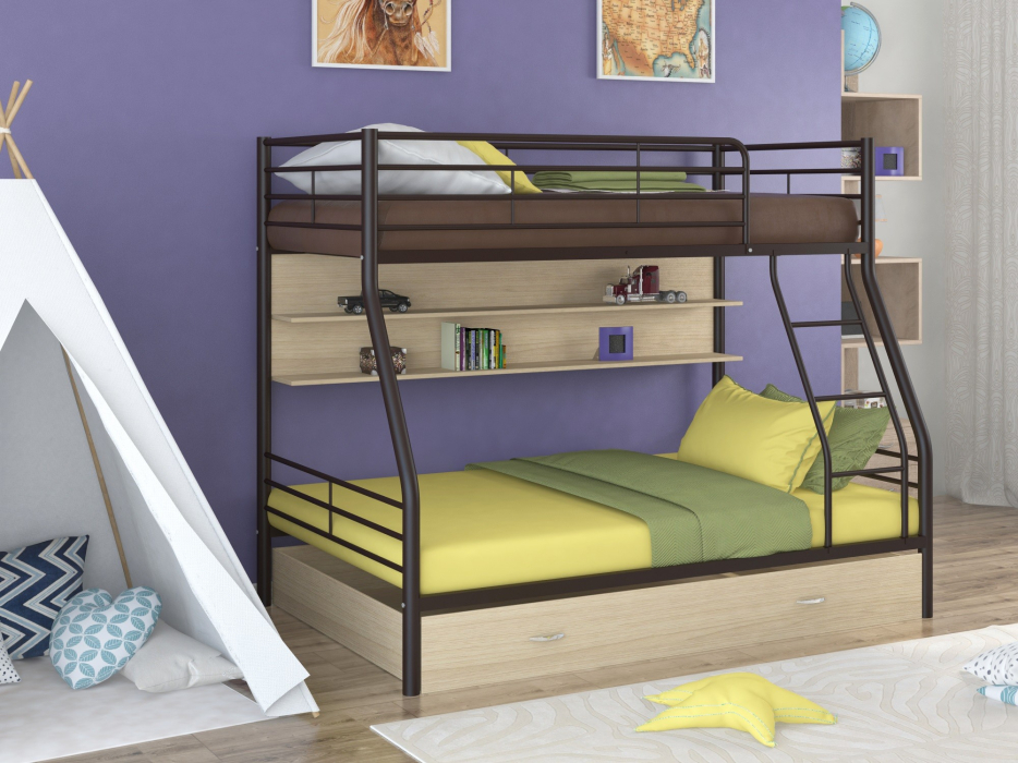 Кровать выполнена из металла с качественным порошковым покрытием. Облегченная конструкция нашей мебели позволяет сделать интерьер менее загруженным, что очень важно при формировании небольших пространств. Кровать выдерживает повышенные нагрузки на спальные места до 180 кг. Простота сборки сделает вашу покупку еще приятнее. Размер нижнего спального места 120*190, верхнего 90*190.