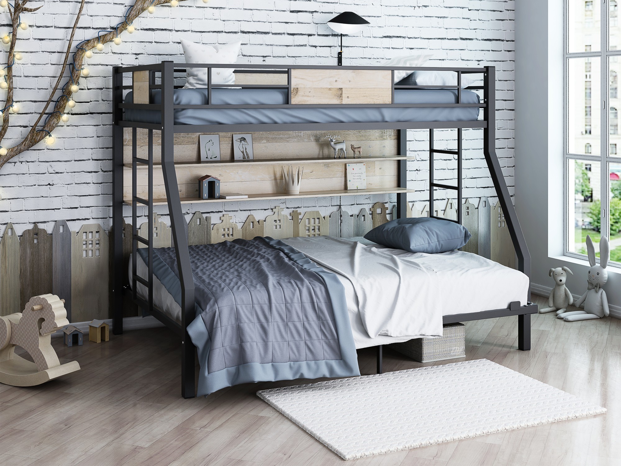 Кровать выполнена из металла с качественным порошковым покрытием. Облегченная конструкция нашей мебели позволяет сделать интерьер менее загруженным, что очень важно при формировании небольших пространств. Кровать выдерживает повышенные нагрузки на спальные места до 180 кг. Простота сборки сделает вашу покупку еще приятнее. Размер нижнего спального места 140*190, верхнего 90*190.