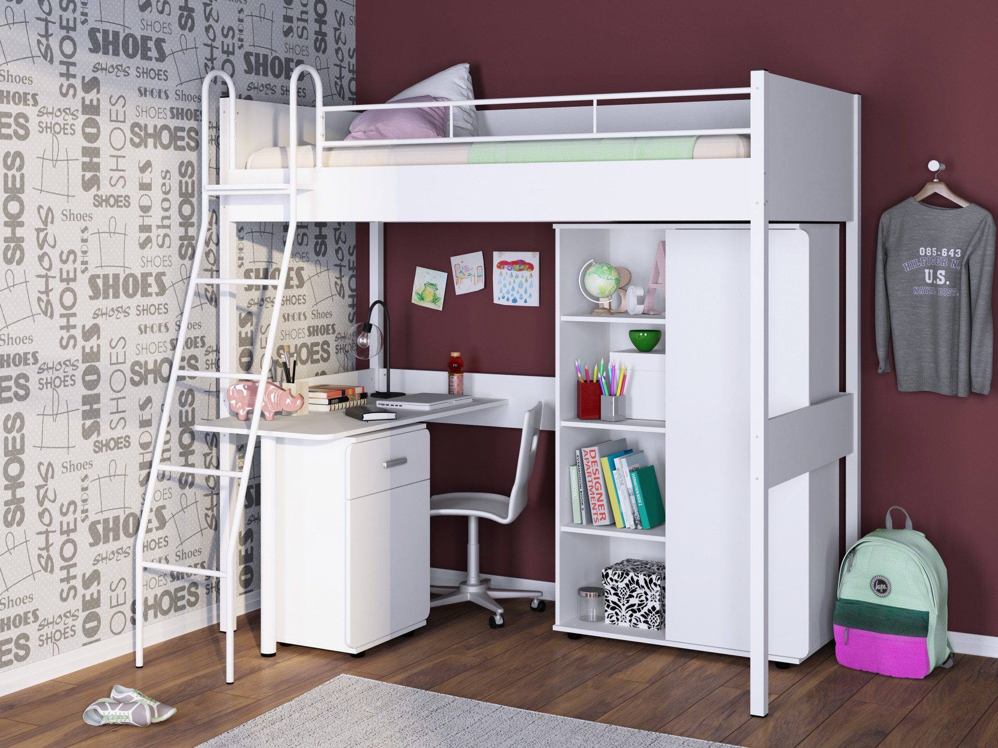 Детская комната ДЕЛЬТА Лофт Композиция 17 (Белый)
