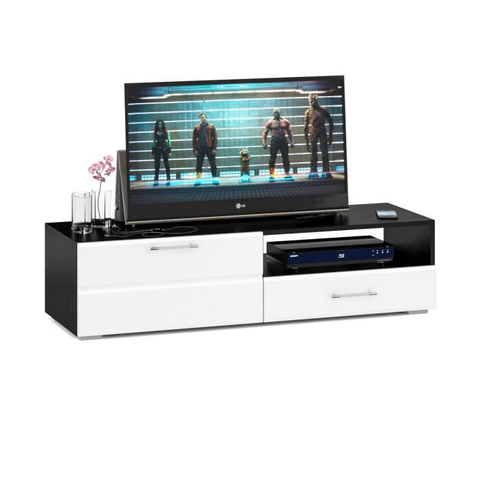 Особый акцент данной модели - глянцевое покрытие фасадов, выполненных из МДФ 16 мм. с торцевой фрезеровкой в виде фацета и геометрической фрезеровкой откидной дверки. Линейный декор тумбы подчёркнут ручками-рейлингами, имеющих сочетанное хромированно-матовое покрытие. Конструктивно тумба разделена на два одинаковой ширины отделения. Слева расположена закрытая откидной дверкой ниша, справа - открытая ниша и выдвижной ящик. На верхнем горизонте тумбы шириной 140 см. достаточно места для современного телевизора любой диагонали, а в нишах и ящике тумбы - для аппаратуры. Установлена тумба на плоские, прочные и надёжные прямоугольные ножки. Пластиковые накладки на ножках защитят Ваше напольное покрытие от механических повреждений. Корпус тумбы изготовлен из ламинированной ДСП 16 мм., фасады - МДФ 16 мм. с глянцевым покрытием, задняя стенка и дно ящика - ЛДВП, торцы деталей закромлены плёнкой ПВХ. Ящик закреплен на роликовых направляющих, откидная дверка - на накладных петлях и имеет магнитные держатели. Поставляется тумба в разобранном виде, надёжно упакованной, с приложенной подробной инструкцией по сборке и комплектом необходимой фурнитуры.
