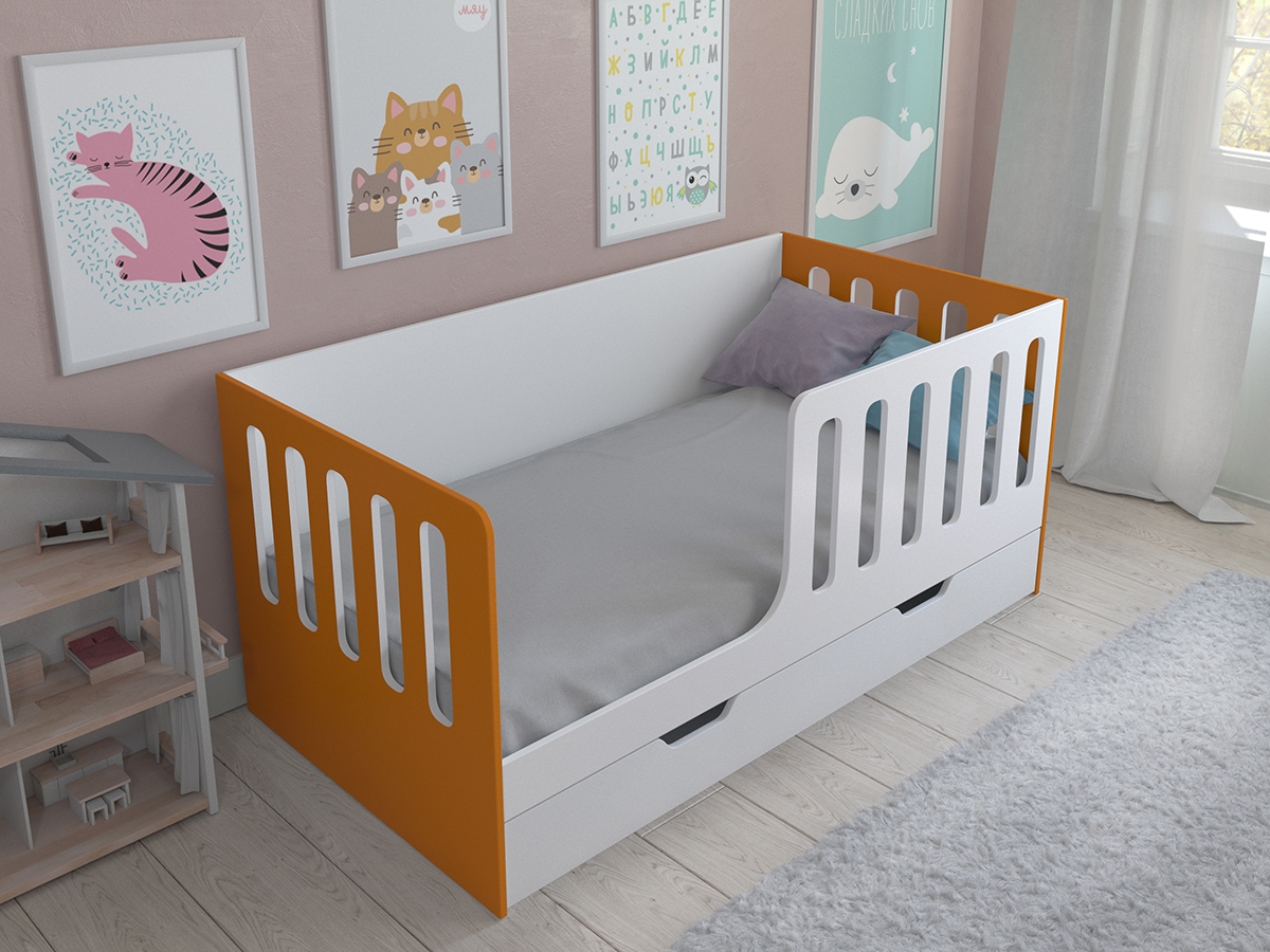 Детская кровать Астра 12 с ящиком (Оранжевый)