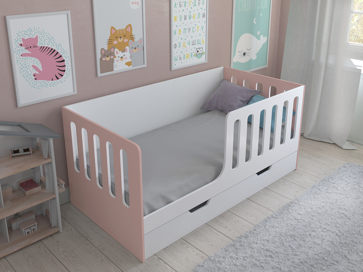 Детская кровать Астра 12 с ящиком (Розовый)